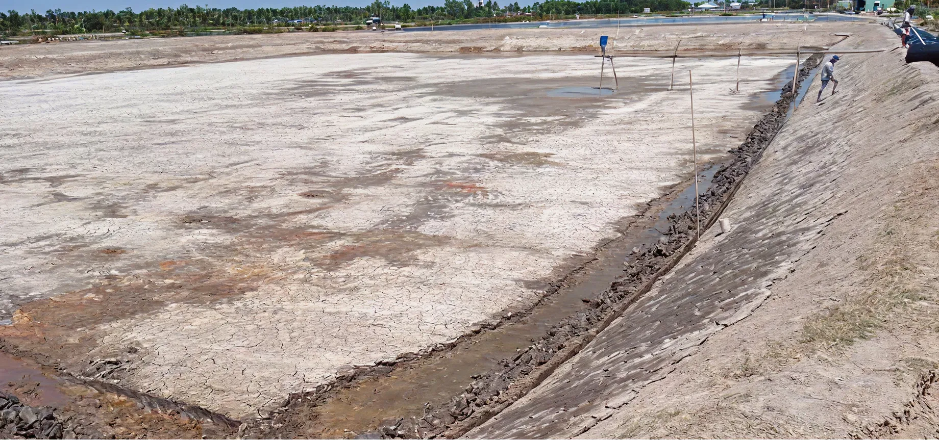 • San phẳng đáy ao, loại bỏ hoàn toàn bùn và vật sắc nhọn